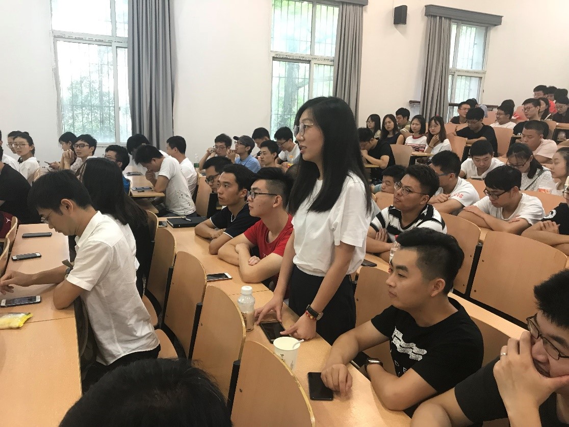 陈曦首先对各位新生的到来表示热烈欢迎,接着她从关键词“初心”开始,让三名同学分享他们来此读研的初心及自己人生的理想抱负,并以杰出校友雷军、院友阮立平和毛明激励同学们胸怀大志、见贤思齐。接着,她就研究生普遍的心理压力,即就业压力、学业压力、人际压力和婚恋压力一一提出解决方法。让同学们在面对消极情绪时学会正视接纳自己的情绪,及时合理宣泄情绪,建立自己的社会支持系统。她提供了学校美女直播 在心理教育及咨询方面能提供的资源及信息,并留下自己的联系方式。最后,她祝愿新生能不忘初心,实现梦想,学有所成。