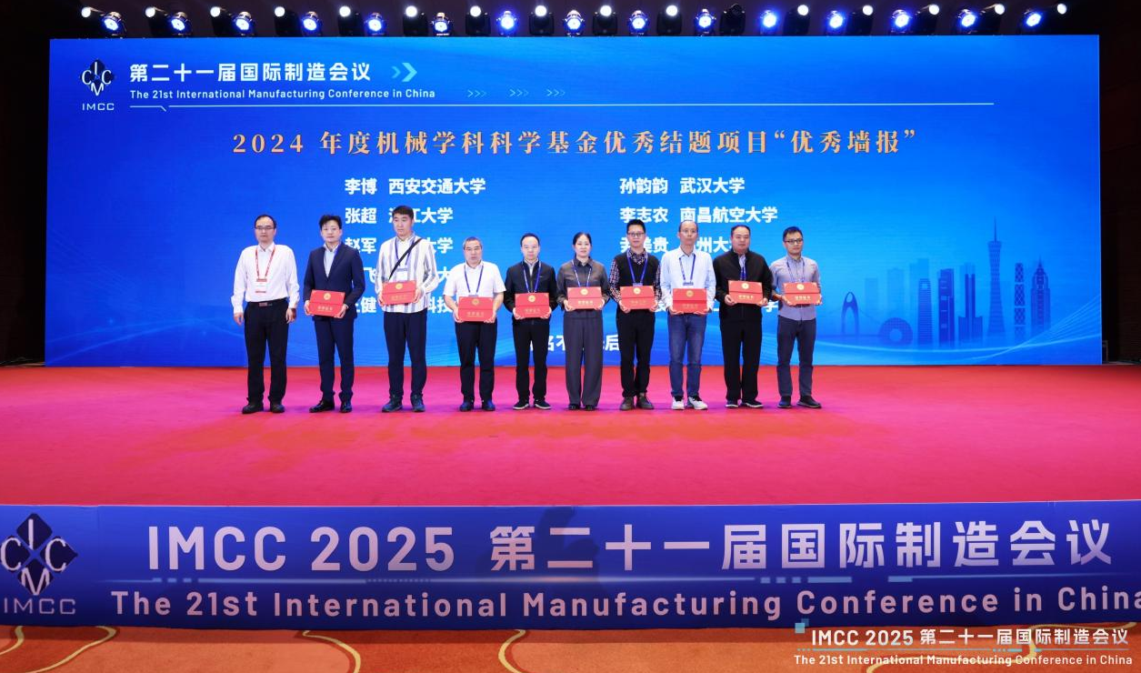 基于该优秀结题项目,孙韵韵老师受邀在第二十一届国际制造会议(IMCC2025)的“基金委优秀结题项目”专场进行墙报展示。会议共汇集了三百余项2024年度优秀结题项目参与墙报交流,大会最终仅评选出十个优秀结题项目(包括面上、地区、青年科学基金)授予“优秀墙报”称号。孙韵韵老师主持的青年科学基金项目成功入选并获此殊荣。